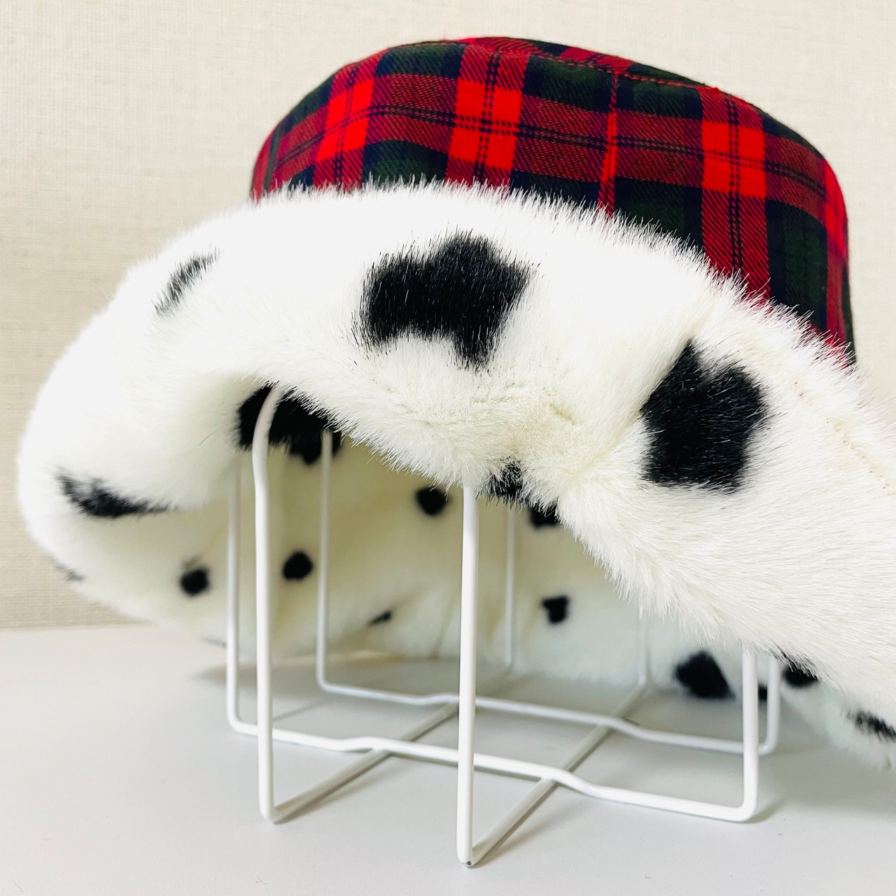 【MLサイズ!ダルメシアンファー×夢の赤チェックなフラワーハット】