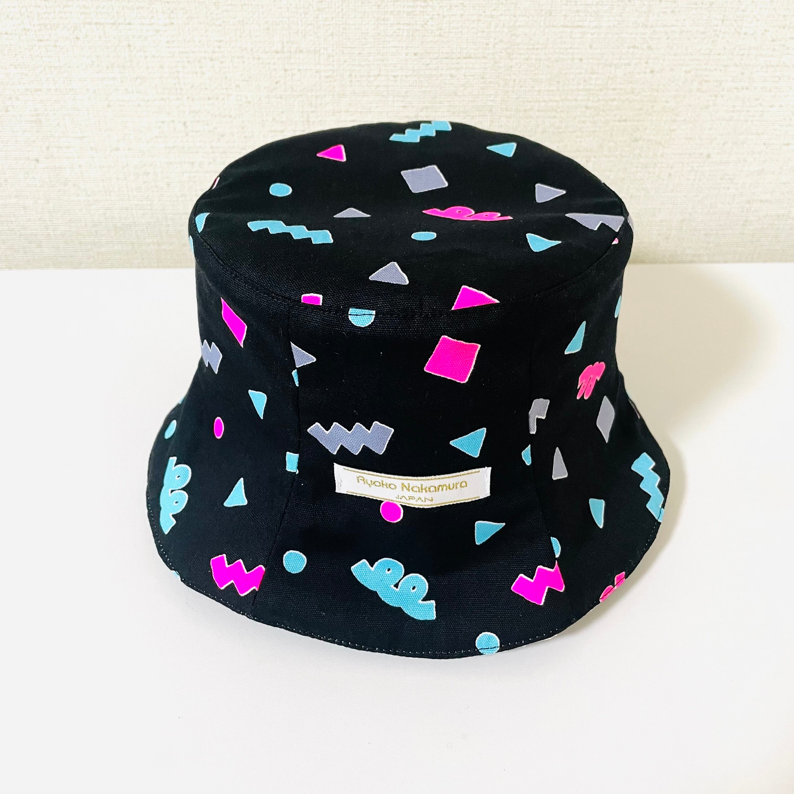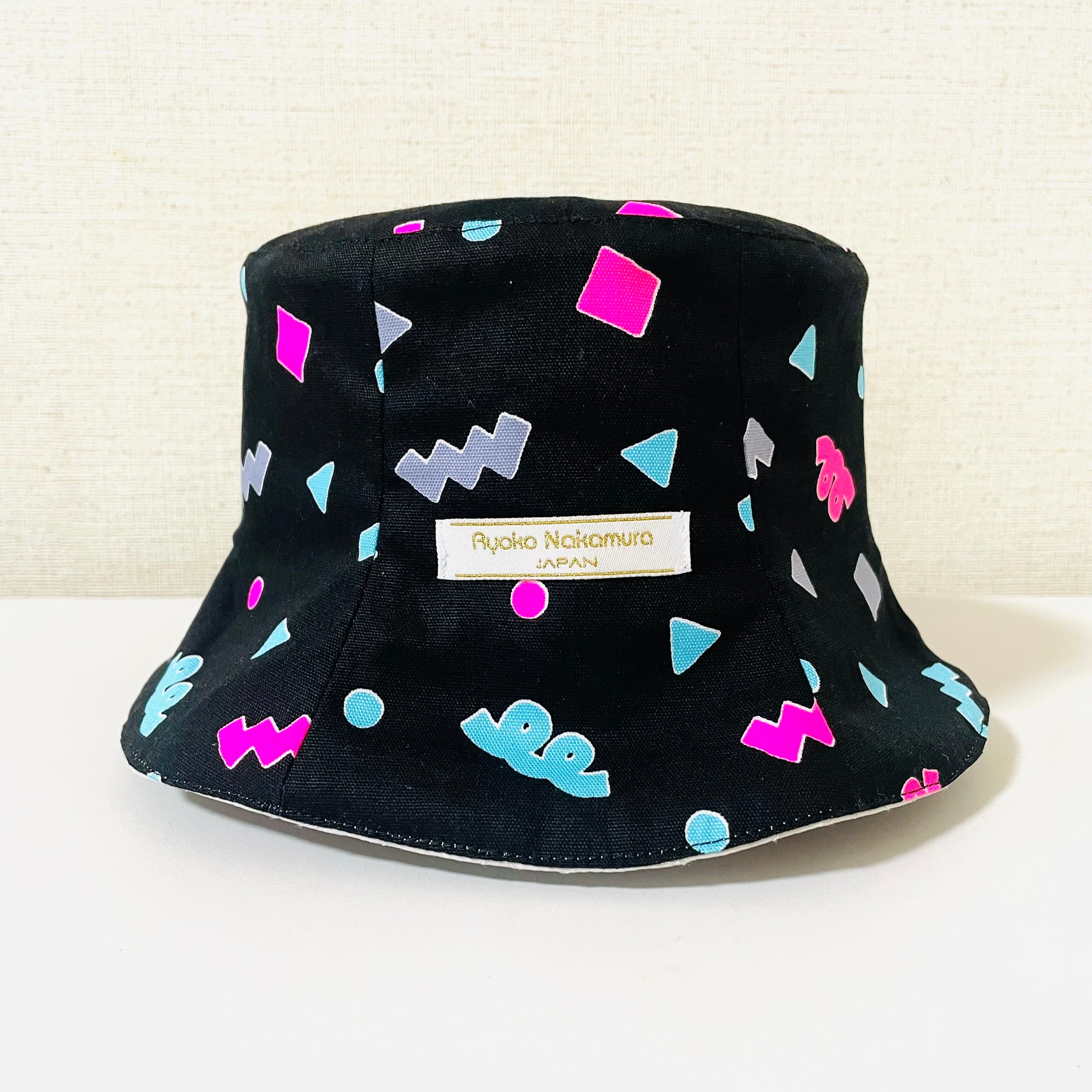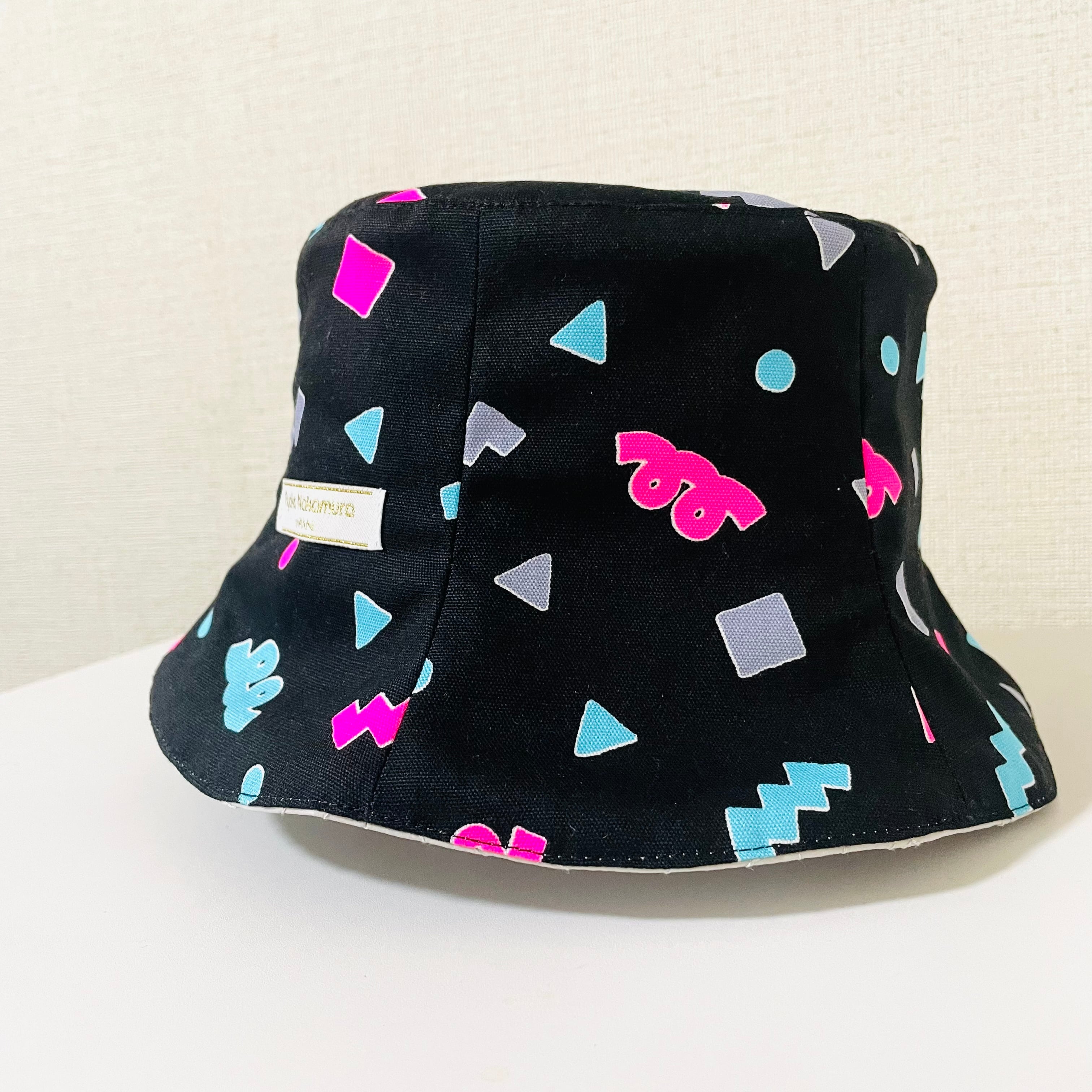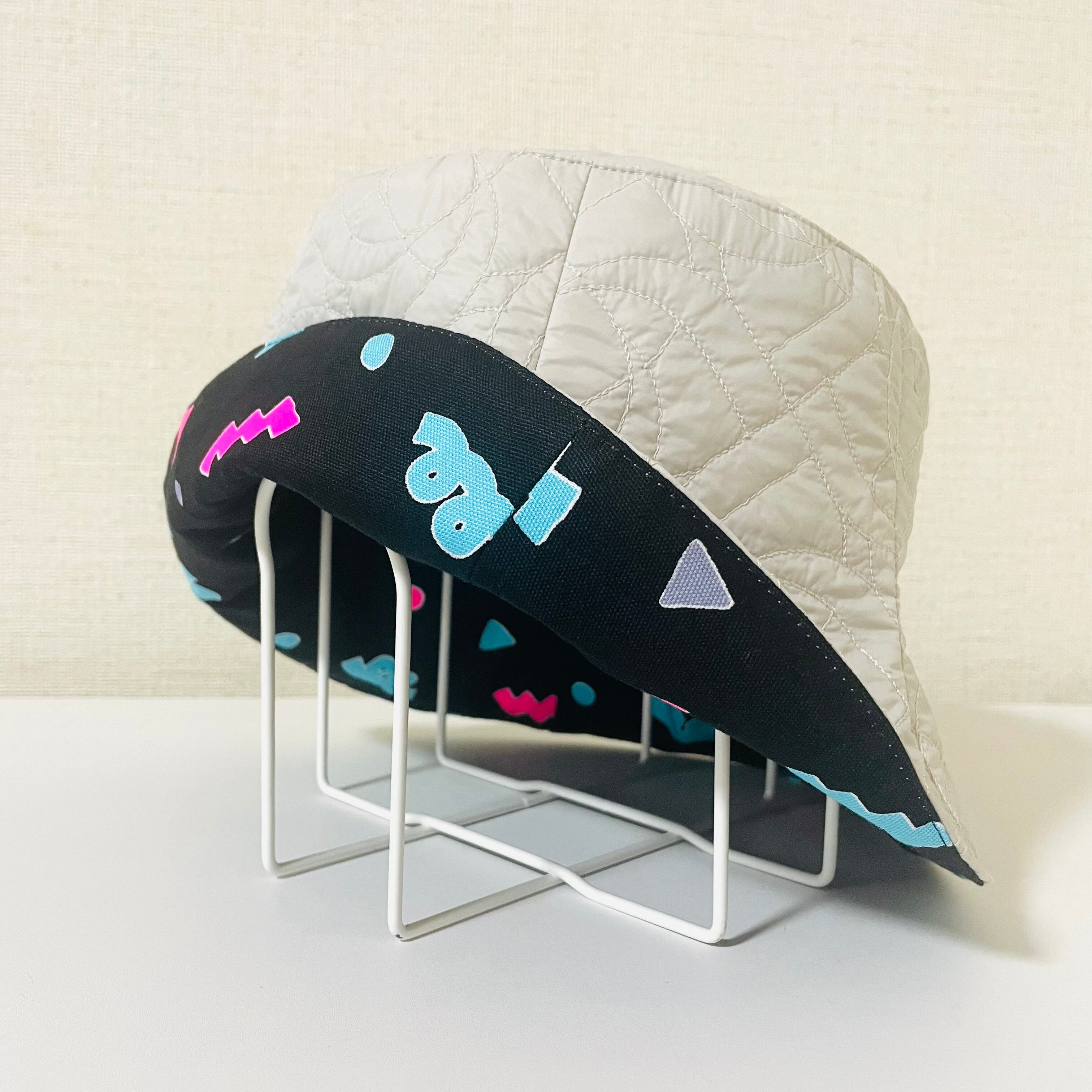 【Mサイズ!ネオンブラックとグレーキルトなフラワーハット】