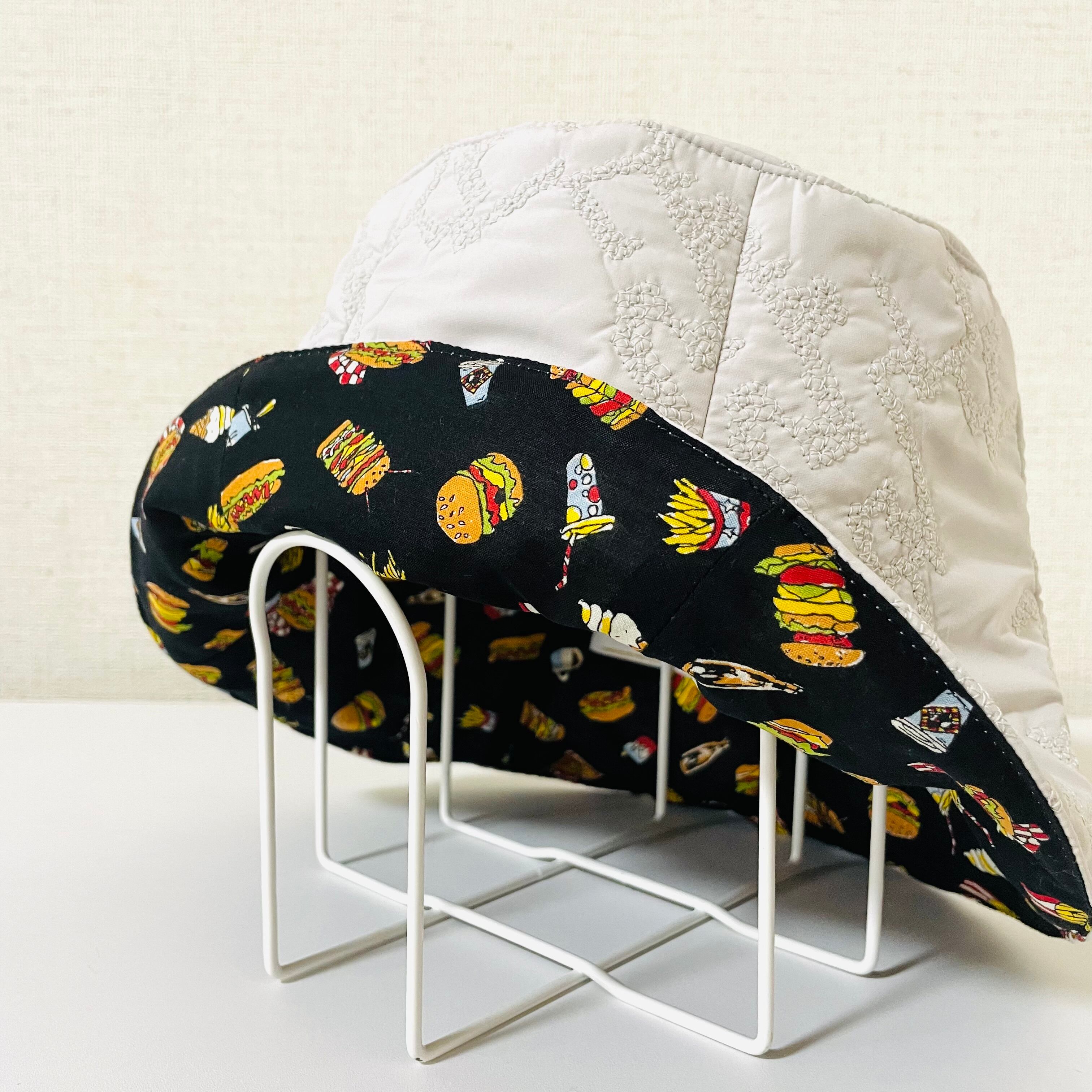【ゆったりM!グレーキルティングとハンバーガーなフラワーハット】