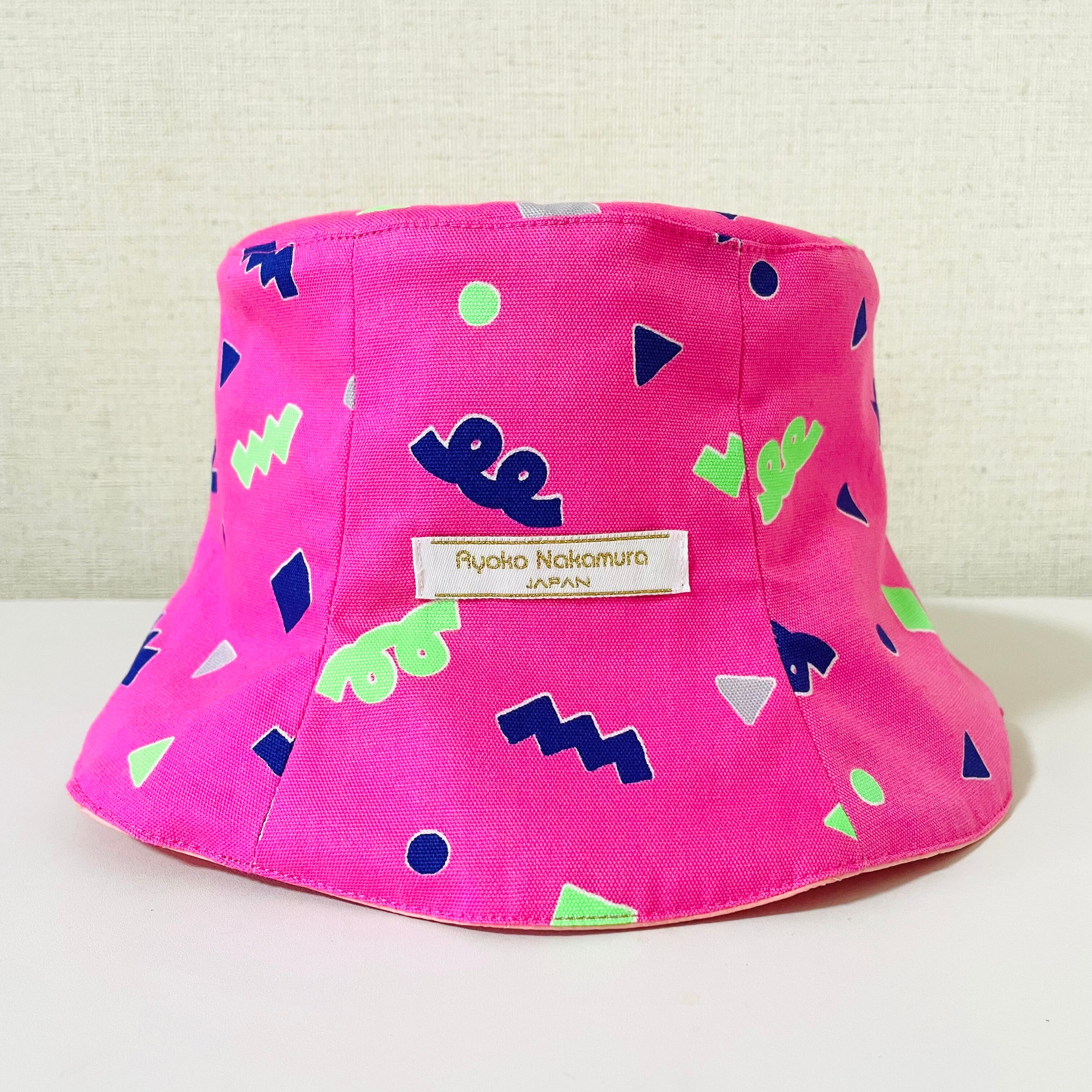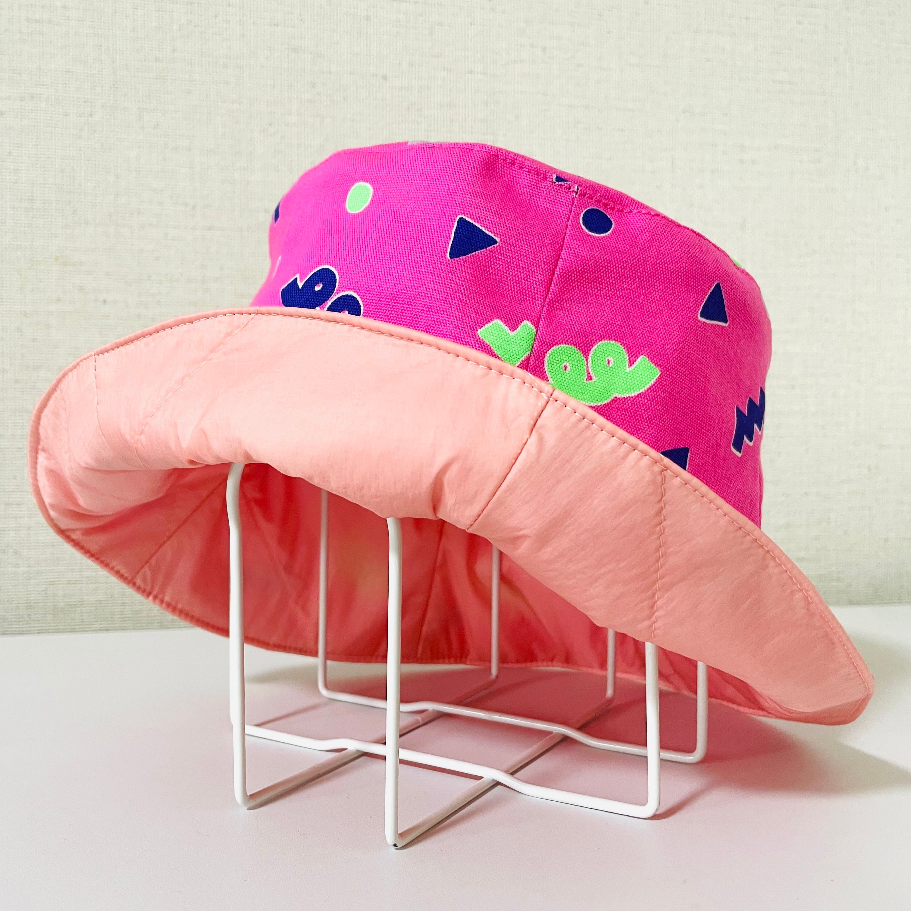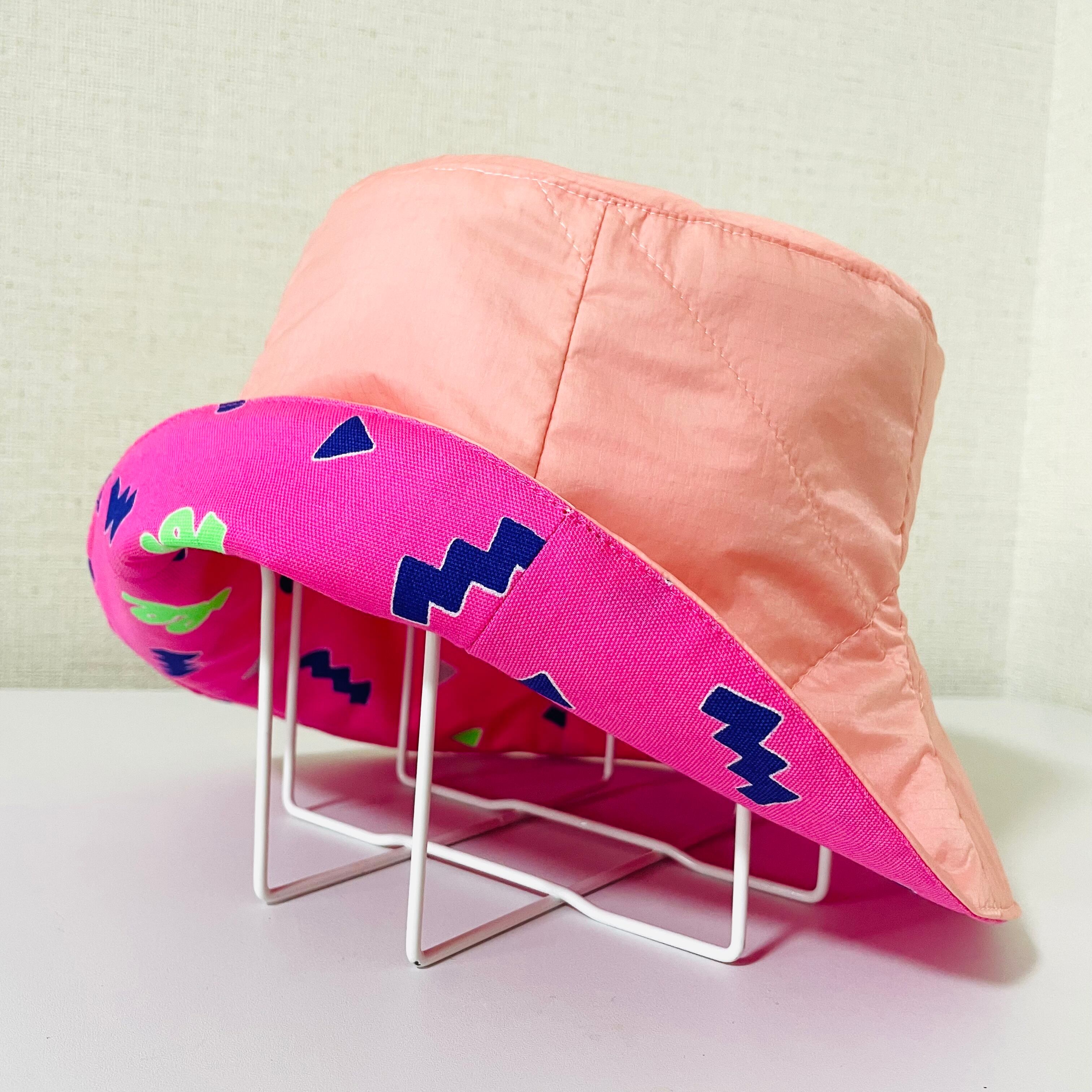 ゆったりM!ネオンピンクとベビーピンクキルトなフラワーハット