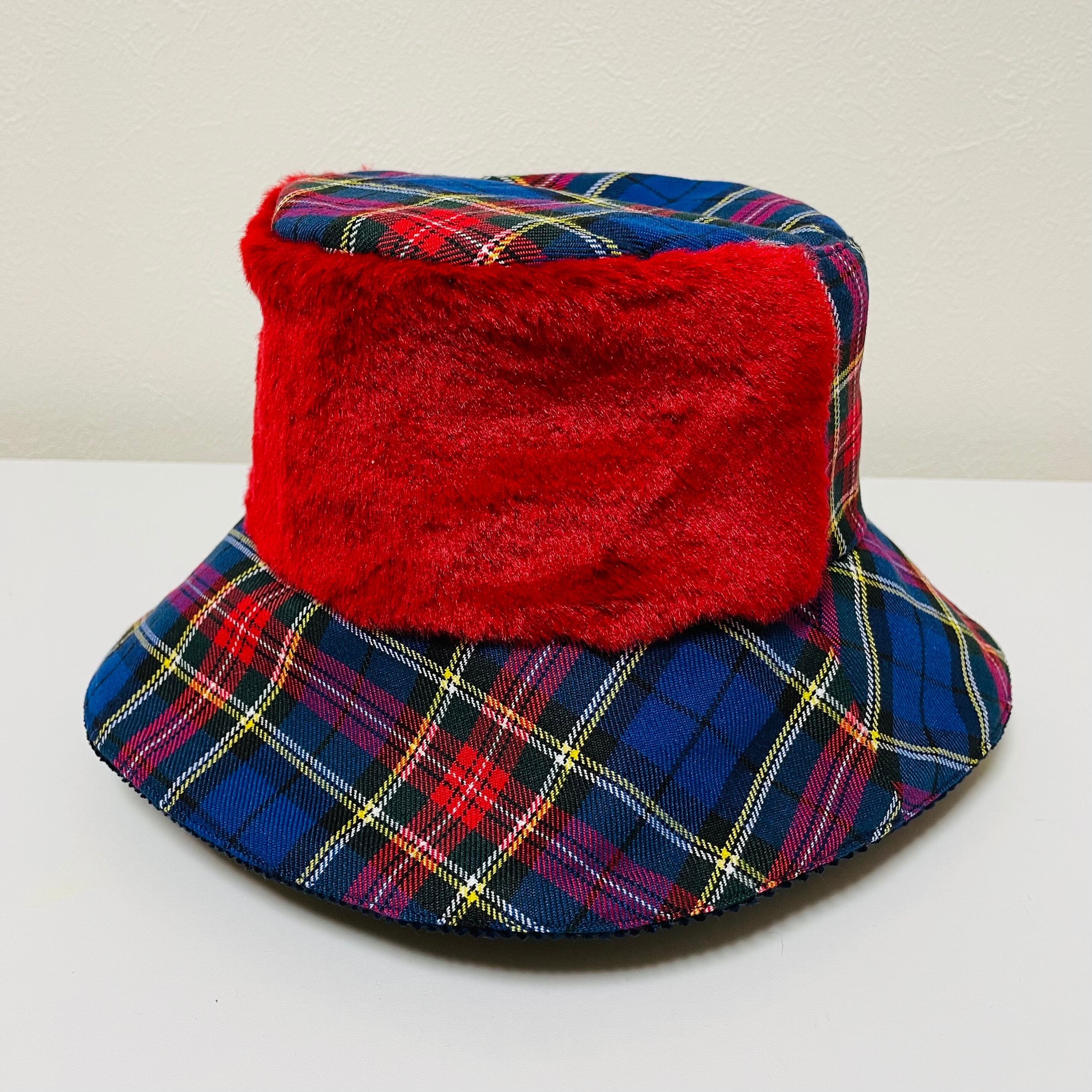 MSサイズ!赤モコ青タータン✖️紺赤コーデュロイなカラリバ帽
