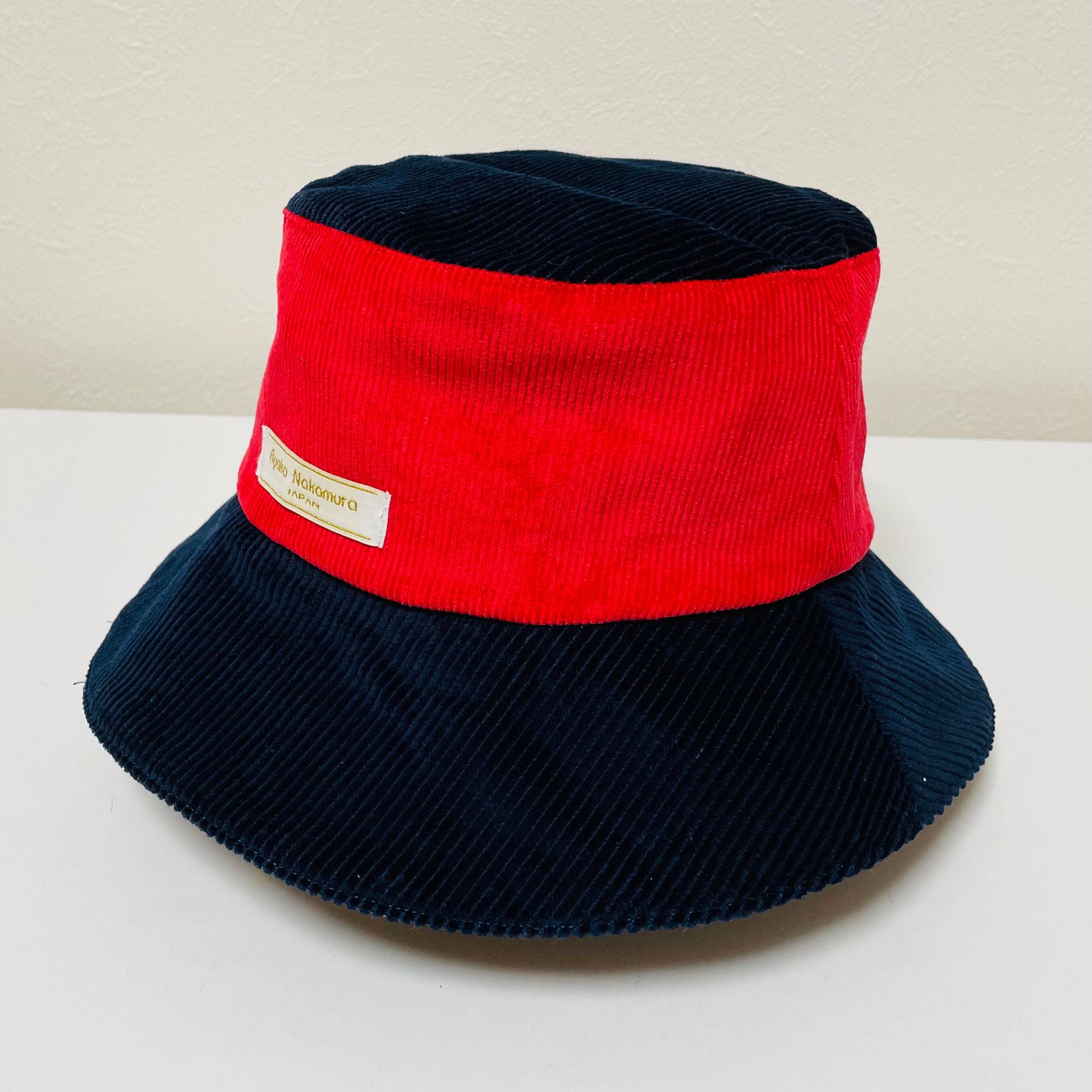 【赤モコ青タータン✖️紺赤コーデュロイなカラリバ帽】