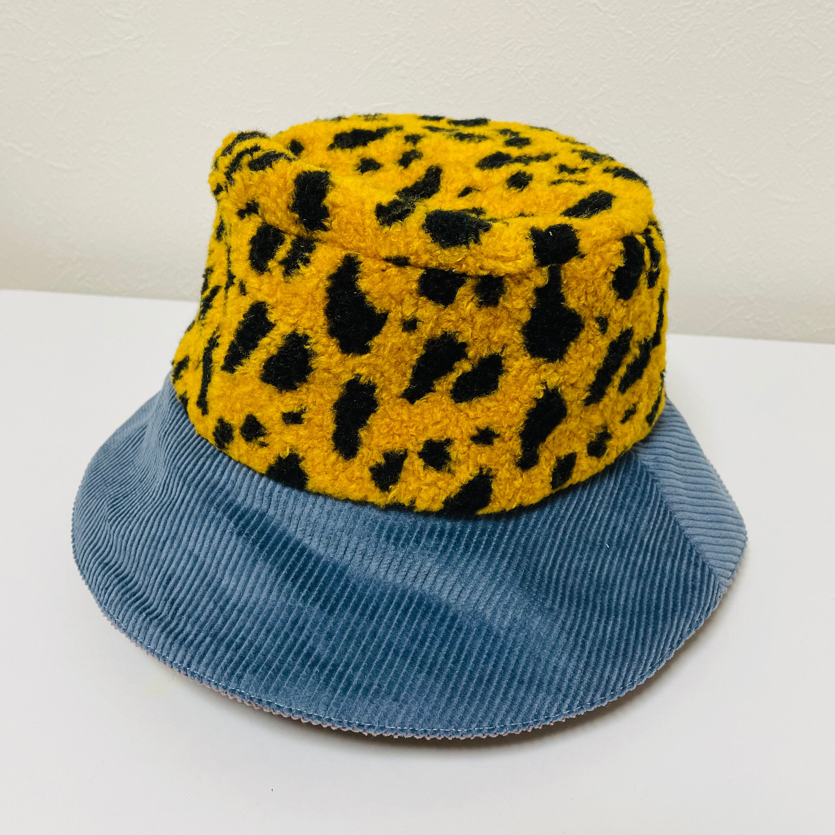 MSサイズ!ヒョウ柄とくすみカラーdeコーデュロイなカラリバ帽
