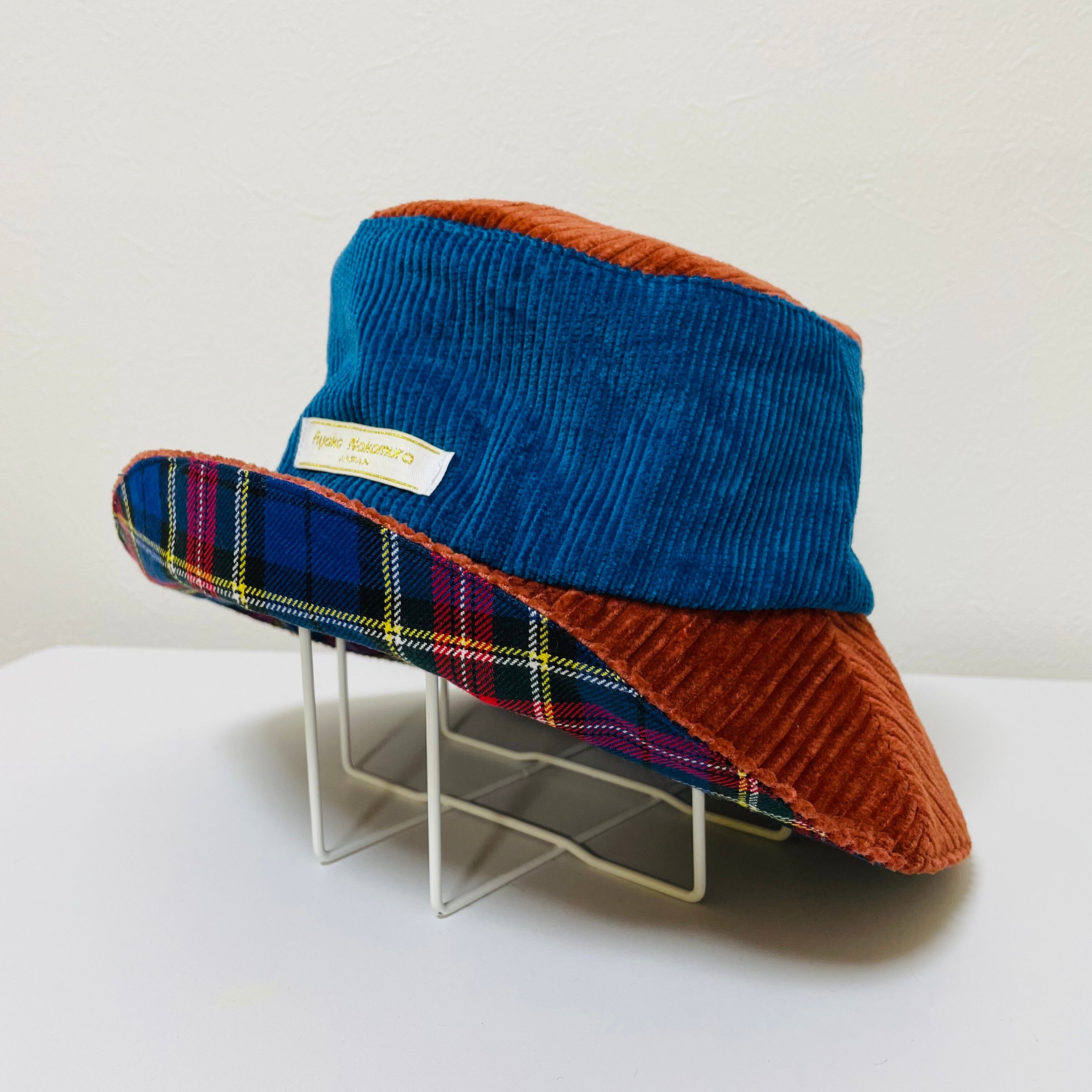 ブルーチェックと雲モコ✖️ブラウンブルーコーデュロイなカラリバ帽