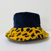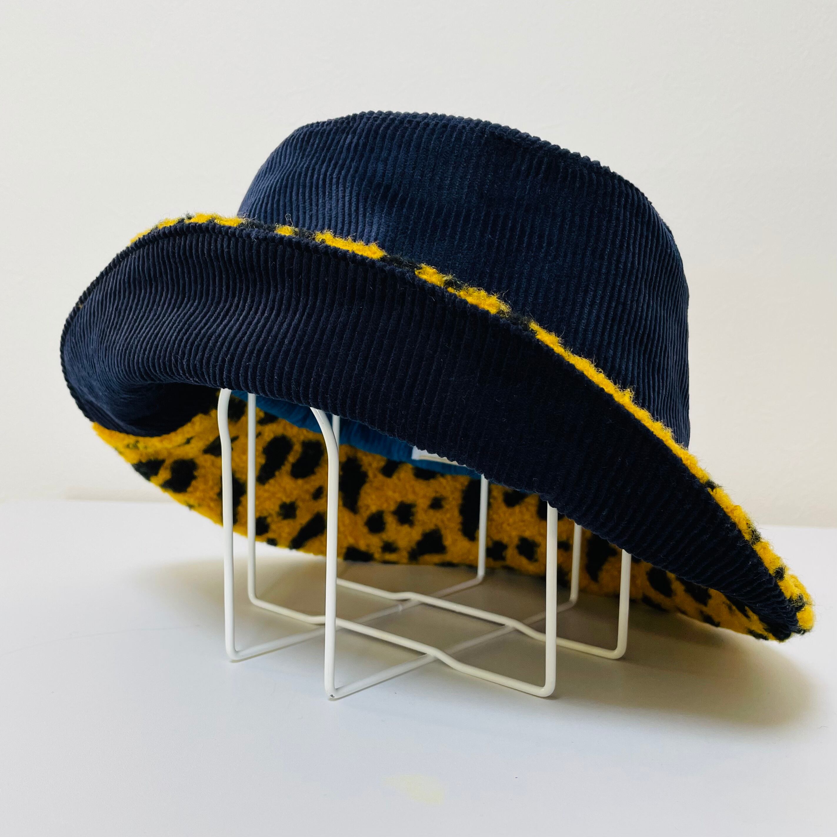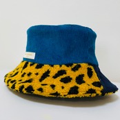 【イエローヒョウ柄モコモコ✖️ネイビー✖️ブルーなカラリバ帽】