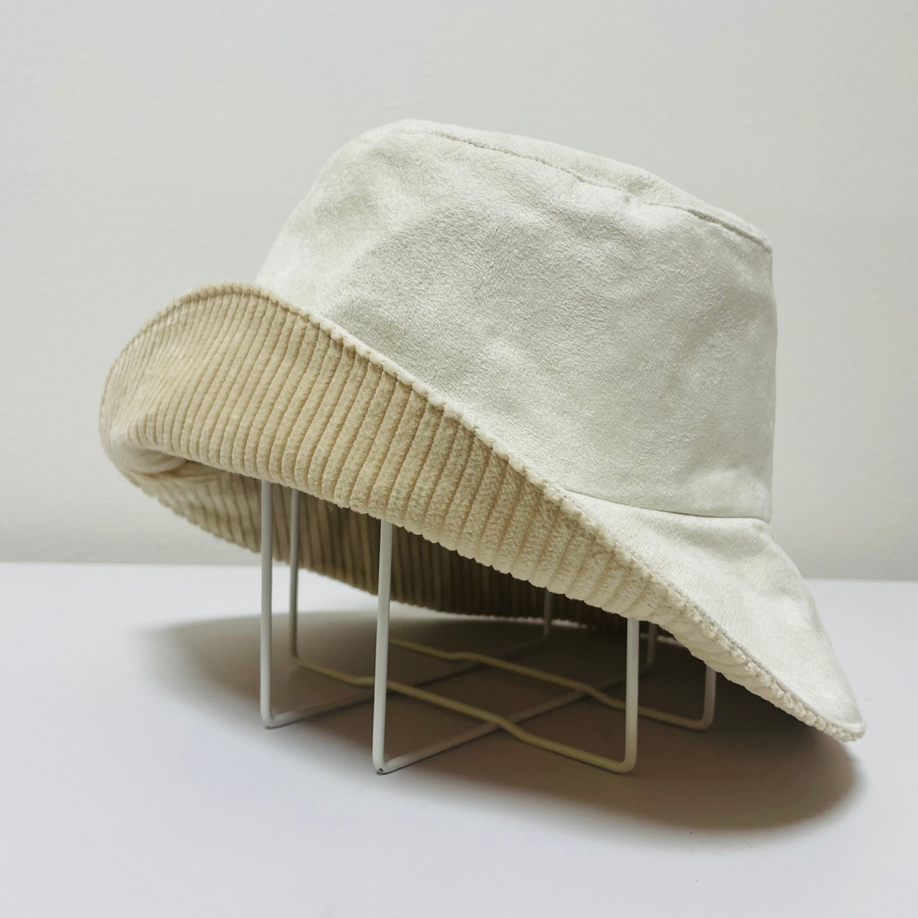 こちらの帽子はほぼがホワイトのベロア生地。