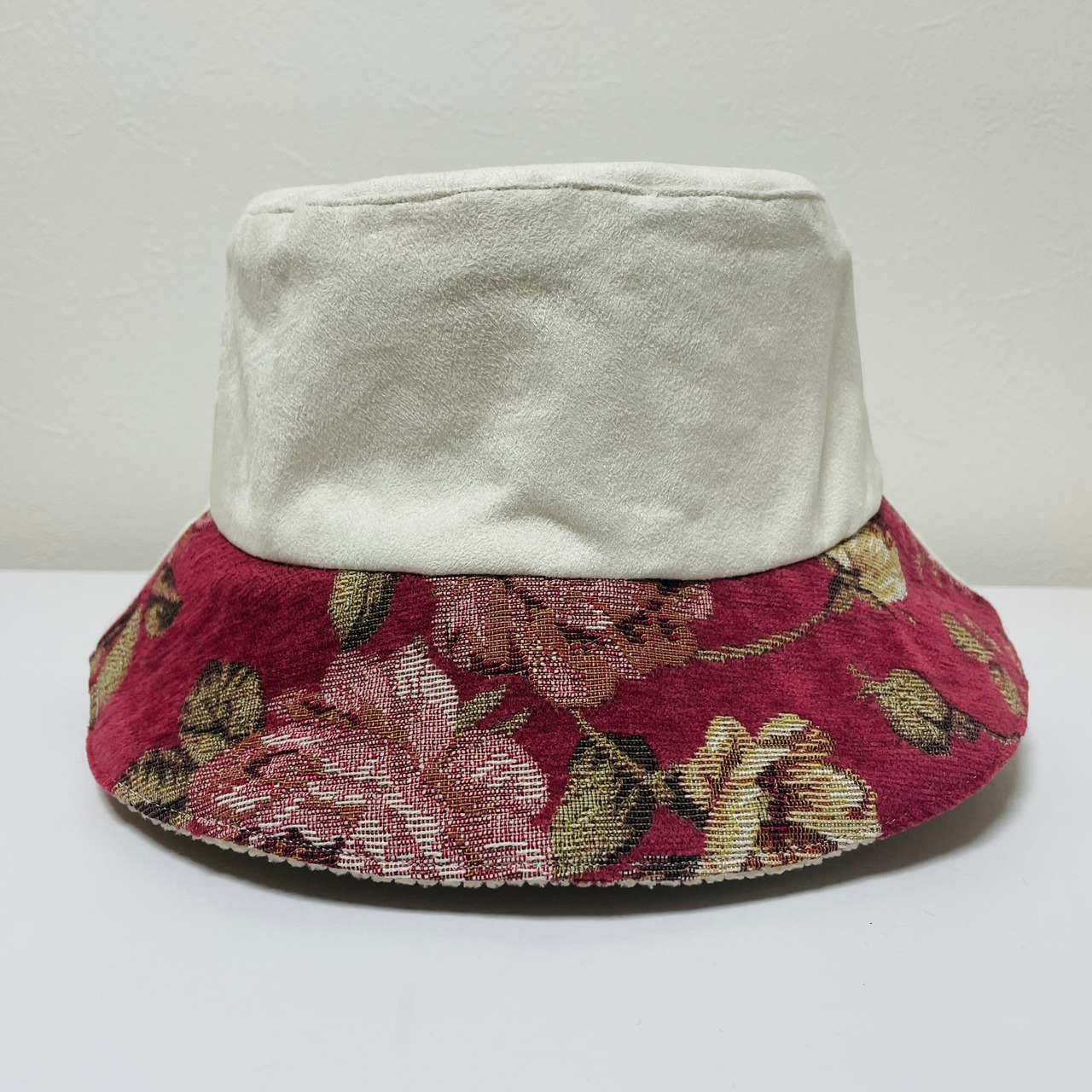 手触りも良く気持ちいい帽子、なんですが、一面しかない花柄に目を奪われます。