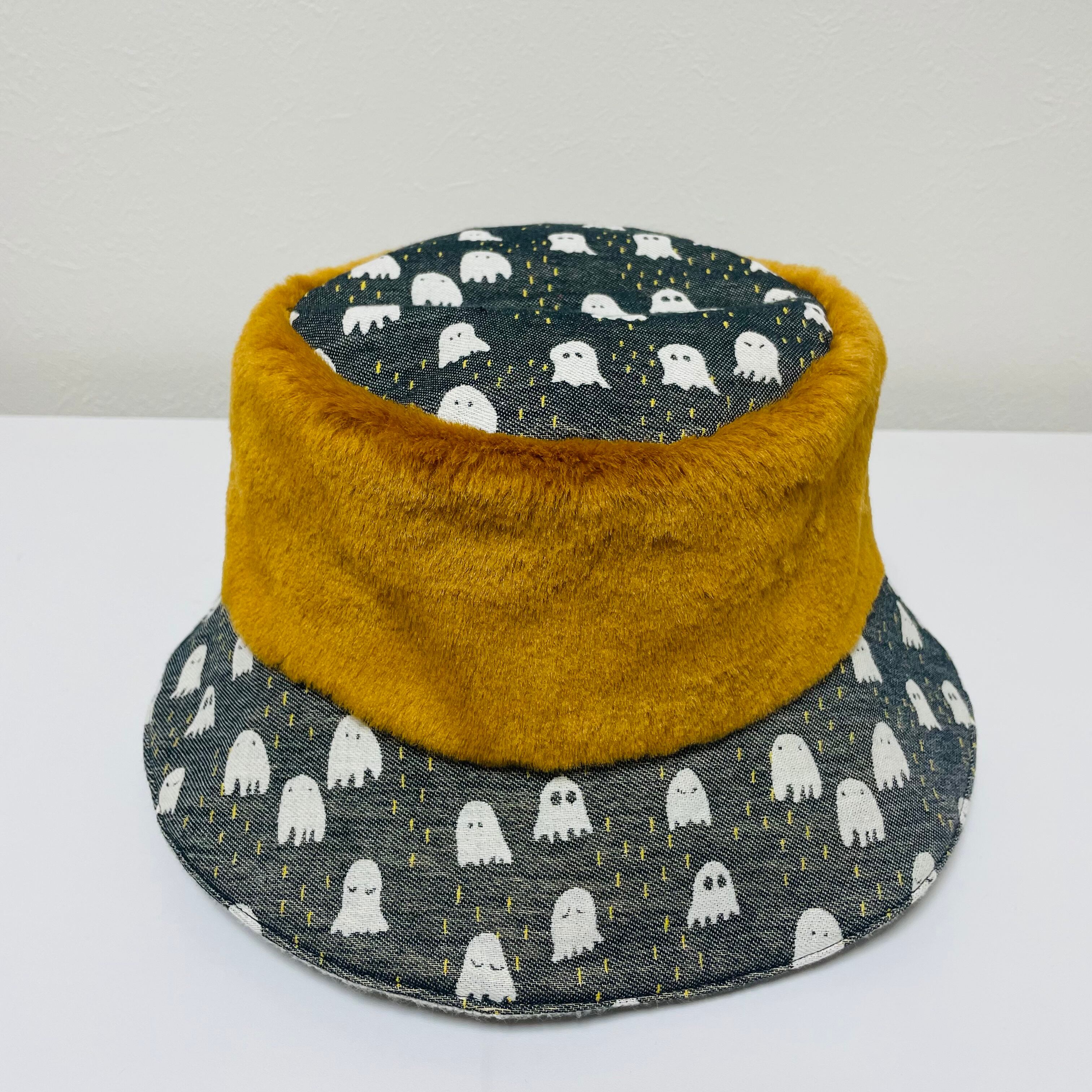 【白黒おばけちゃんとぐるりとキツネ色ファーなカラリバ帽】
