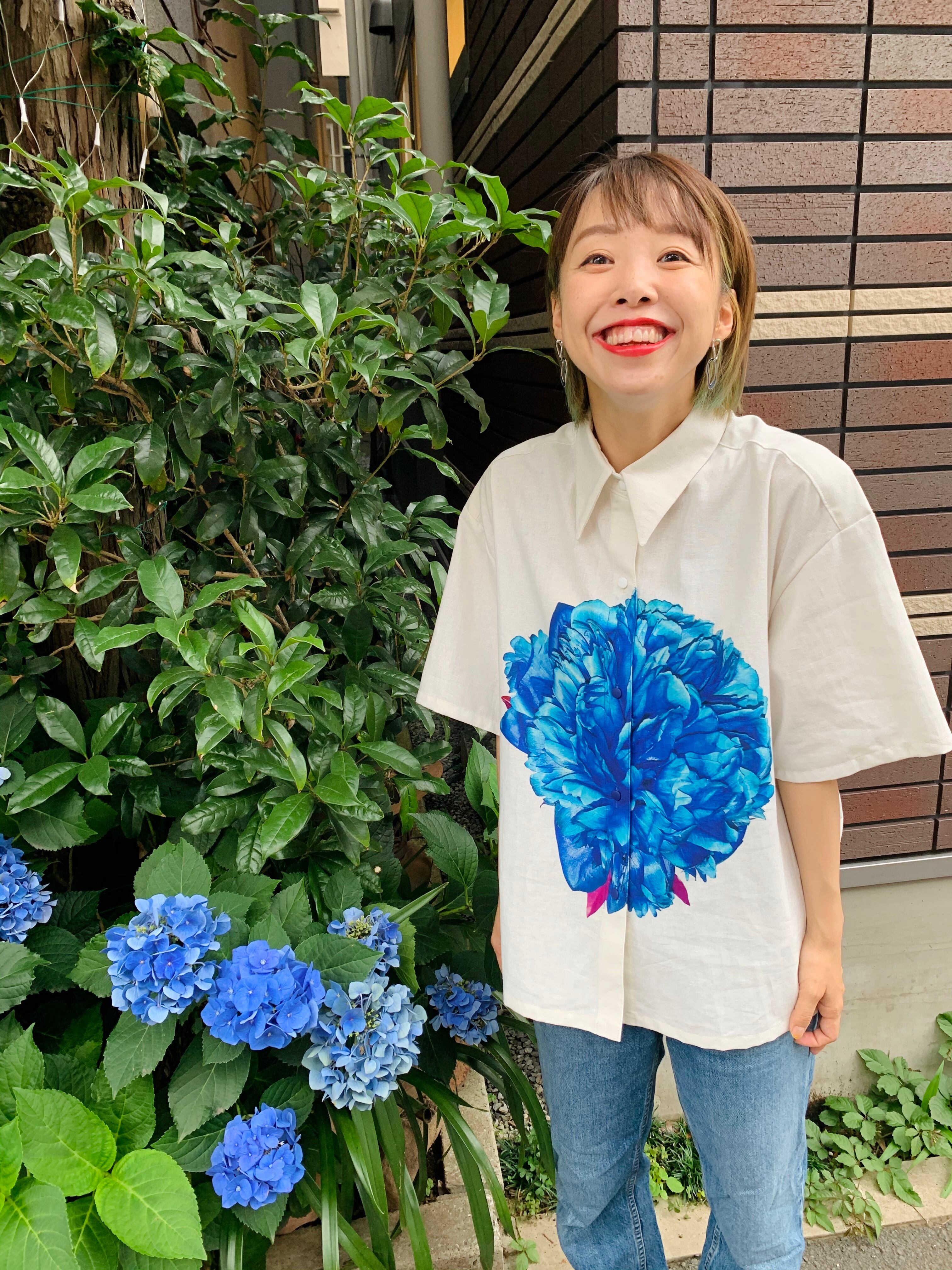 大きく大輪の花として中心に添え、シャツを作りました。