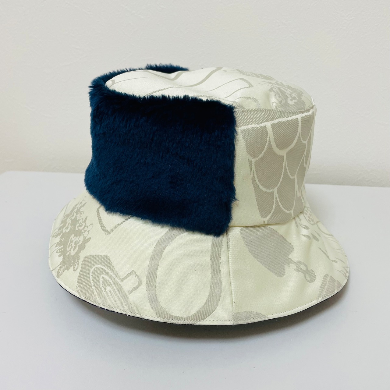 ガーデニング柄✖️ネイビーモコモコ✖️デニムなカラリバ帽