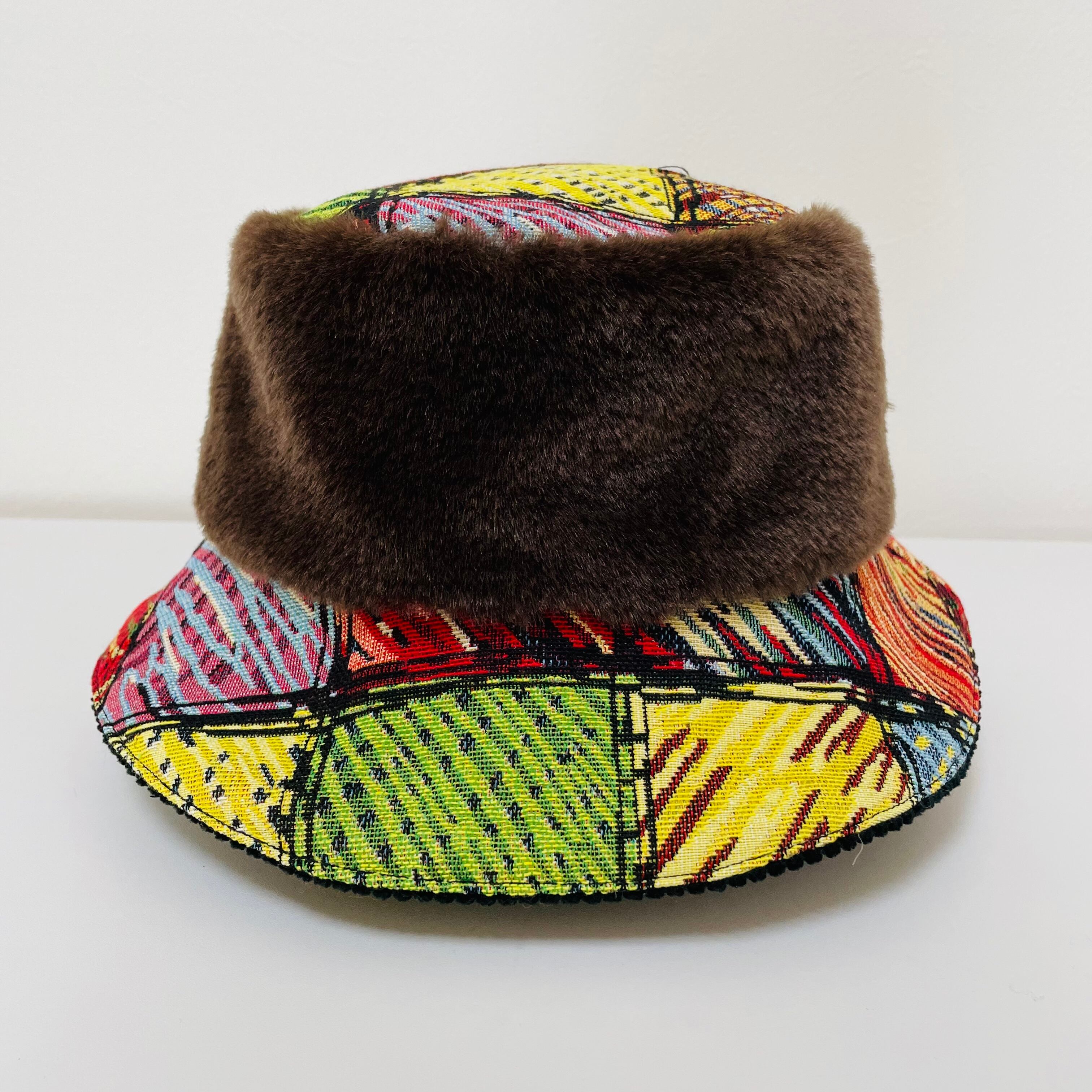 グルリと!茶モコモコ✖️派手デカチェックなカラリバ帽