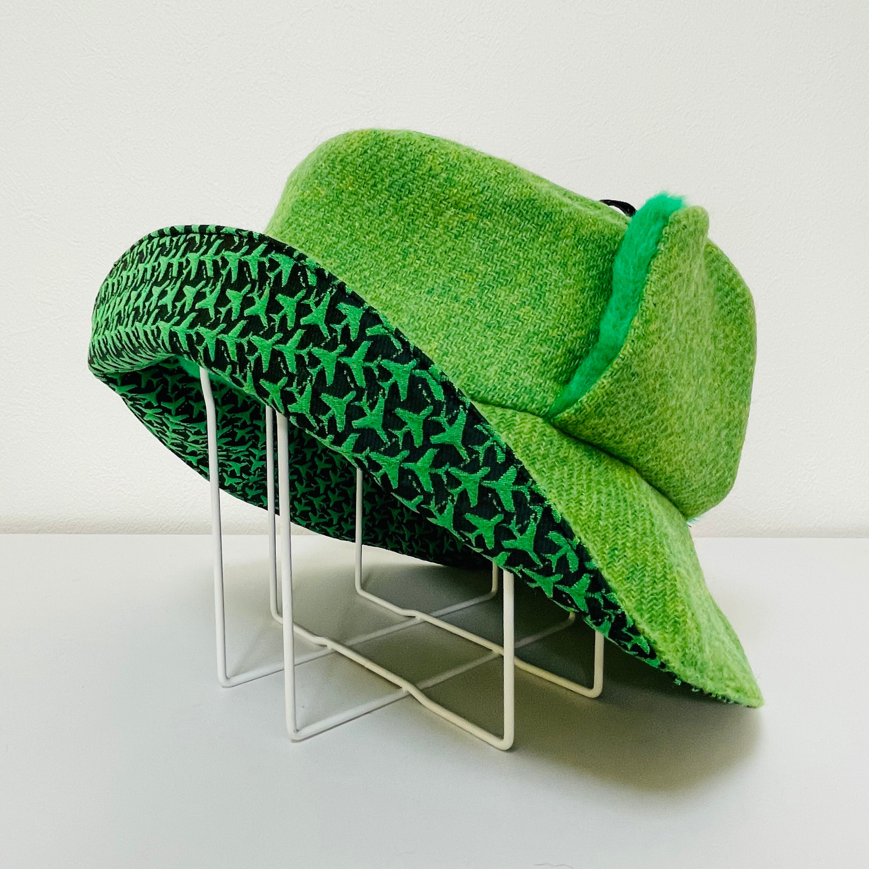 【耳付き!グリーンモコ!✖️グリーン飛行機なカラリバ帽】