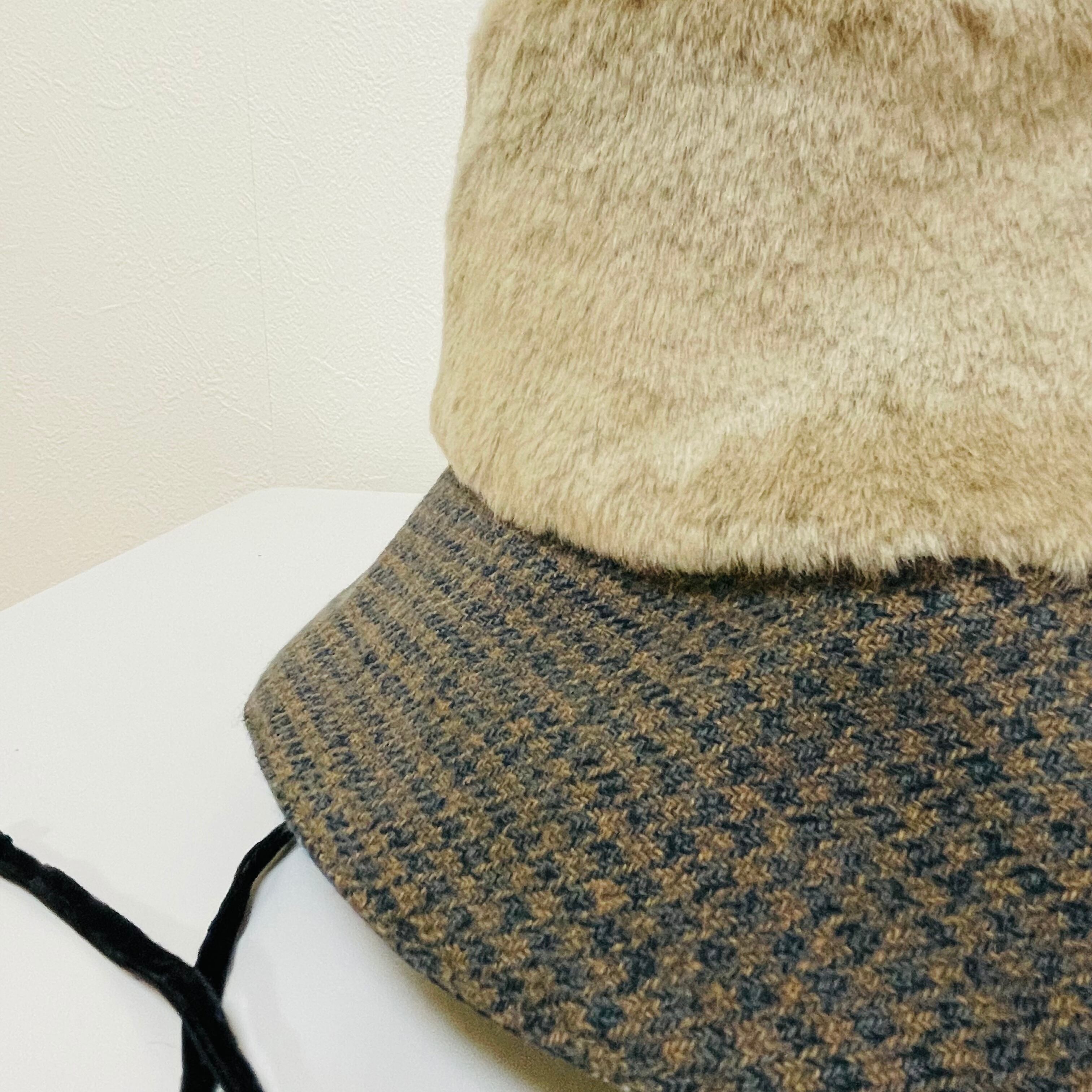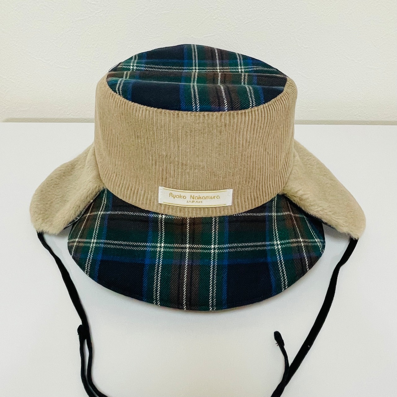 Mサイズ!耳付き!ツイード千鳥格子✖️タータンチェックなカラリバ帽