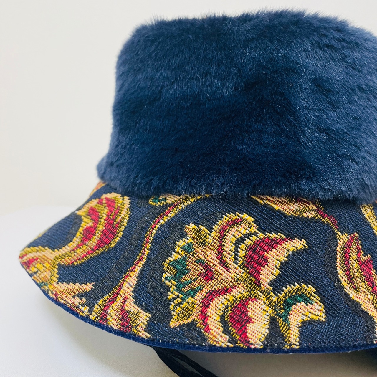 【耳付き!ネイビーゴブラン✖️ネイビーファー✖️ネイビー別珍なカラリバ帽】