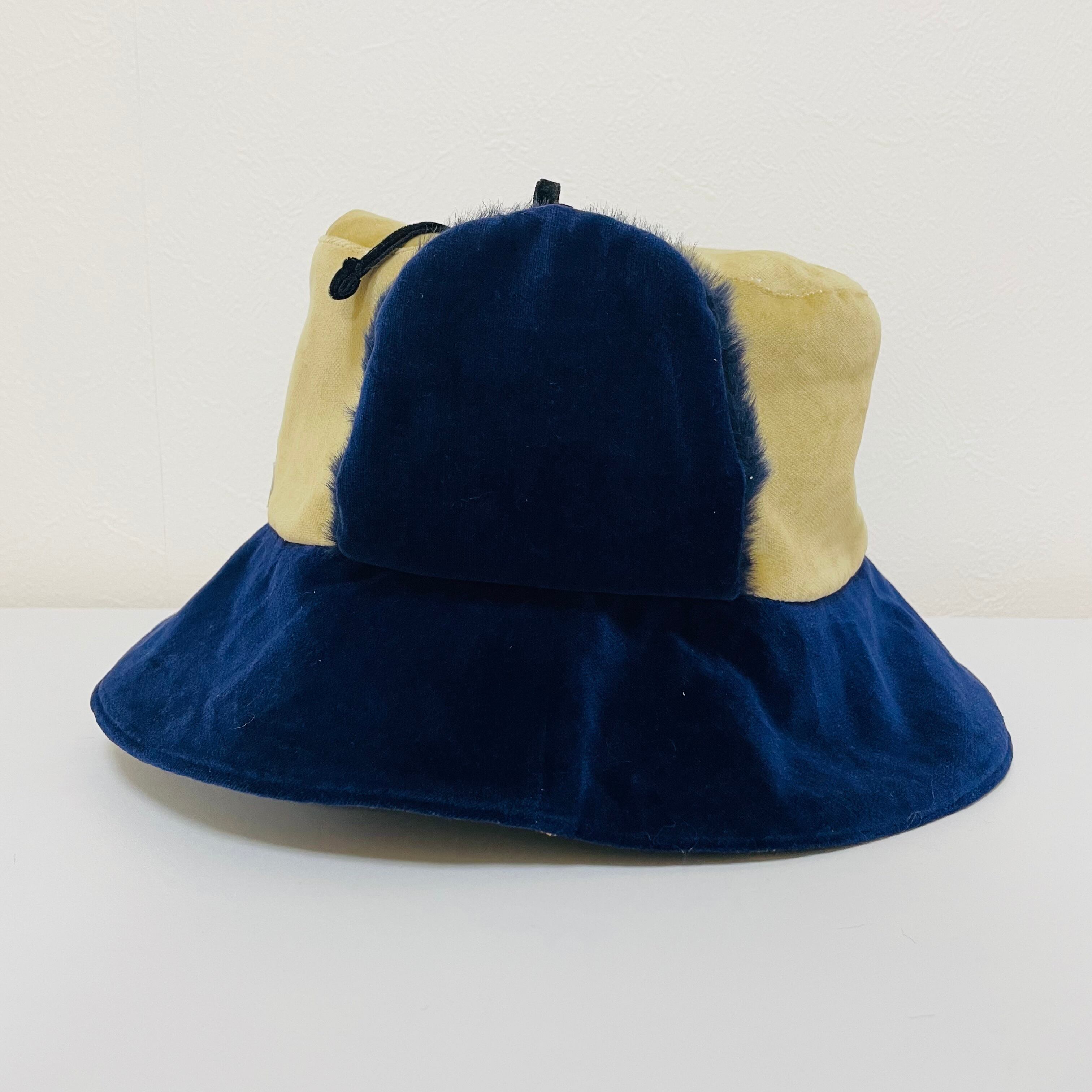 ゆったりM!耳付き!ネイビーゴブラン✖️ネイビーファー✖️ネイビー別珍なカラリバ帽