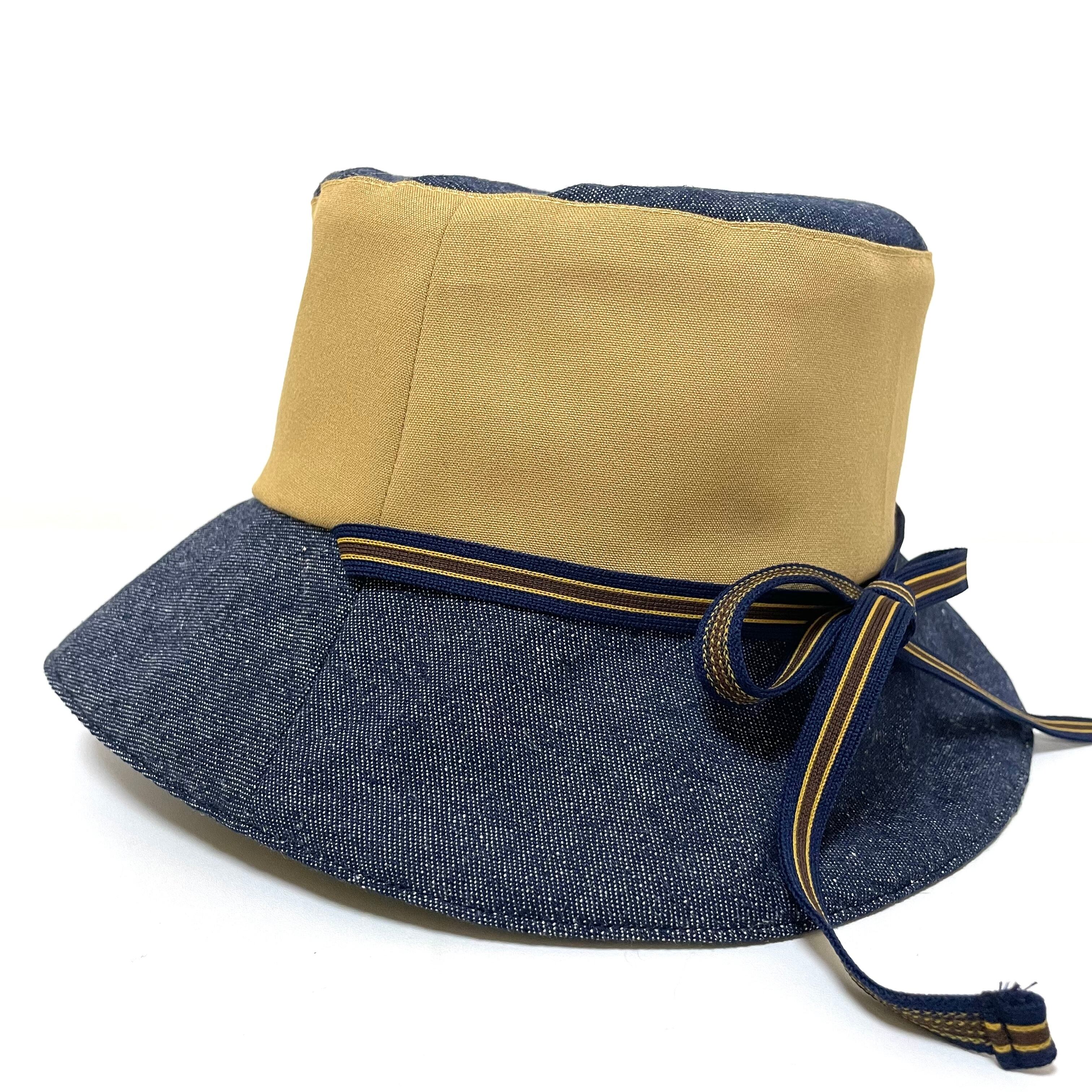 【紐付き!ネイビー草花✖️デニムとフォックスカラーなカラリバ帽】