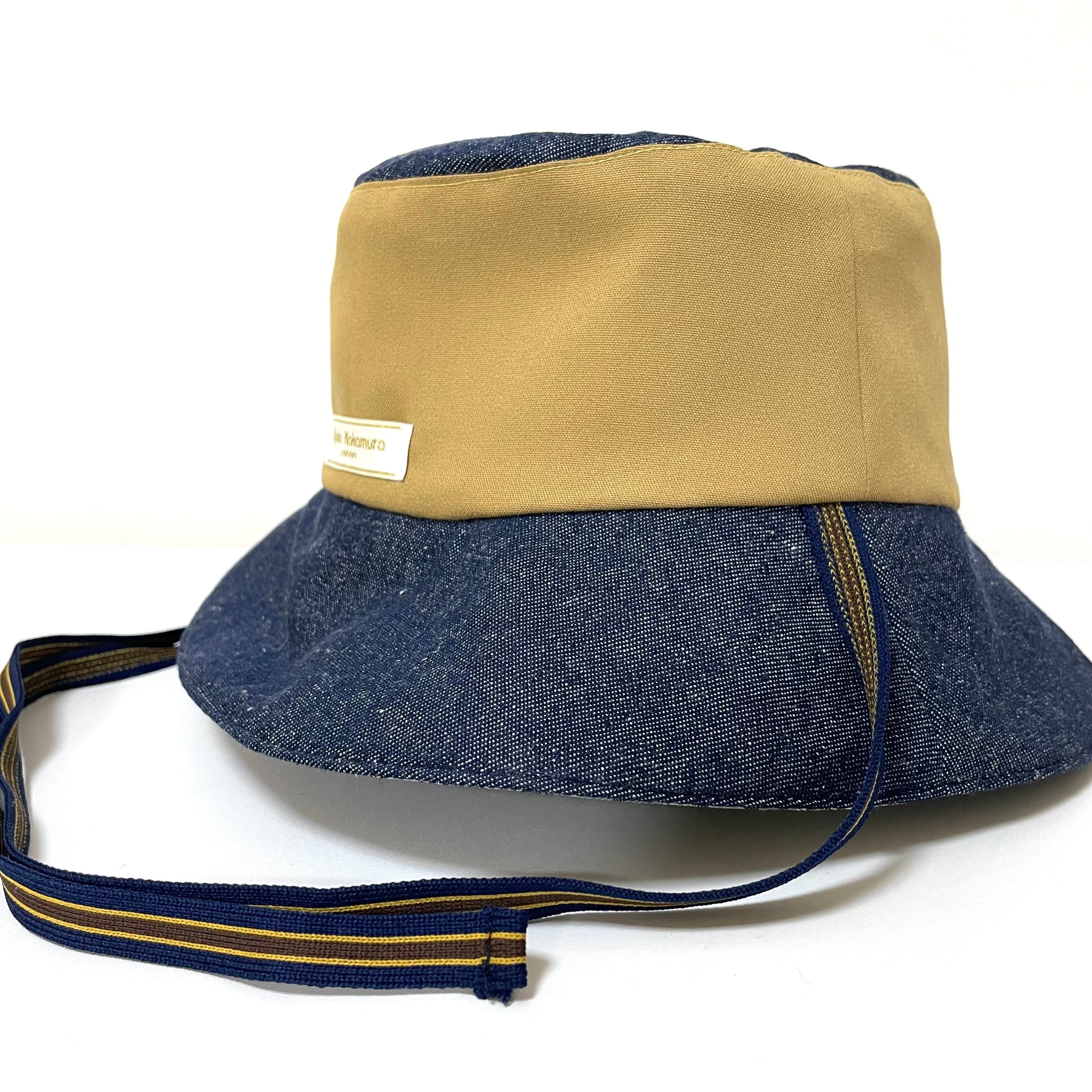 Mサイズ!紐付き!ネイビー草花✖️デニムとフォックスカラーなカラリバ帽