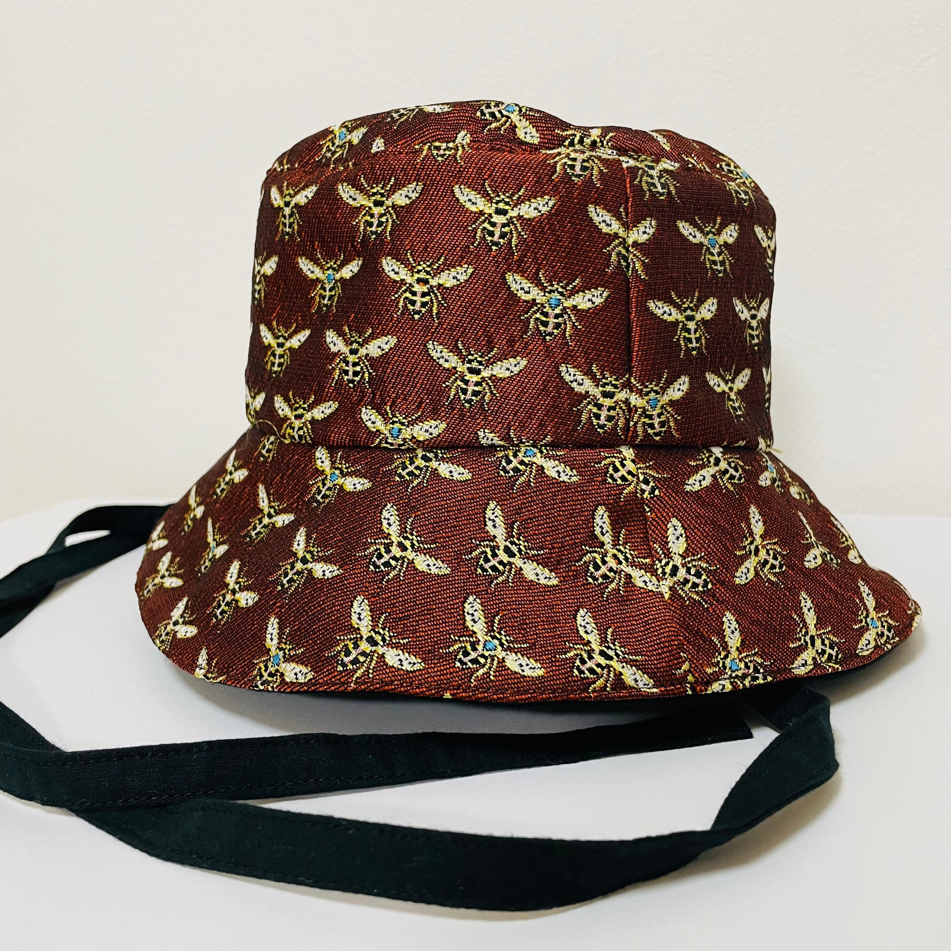 Mサイズ! 紐付き!ブンブンハチ✖️黒の綿麻気持ちいカラリバ帽