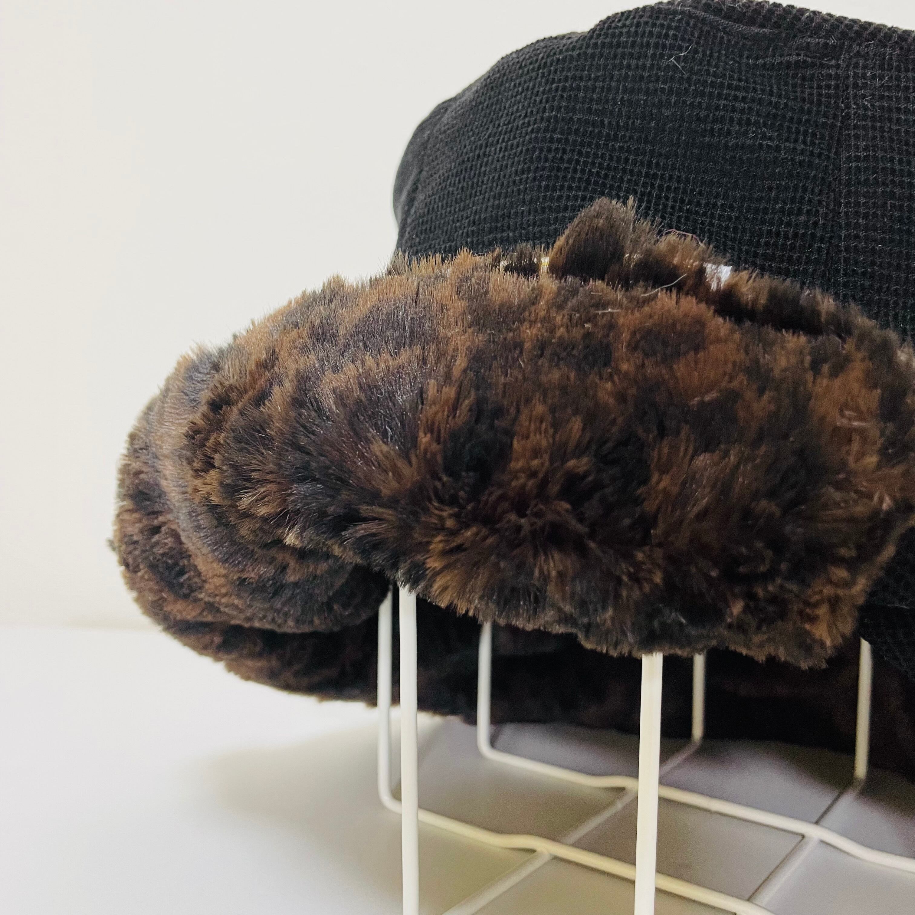 MLサイズ!ヒョウ柄ファーとブロックコーデュロイのフラワーハット