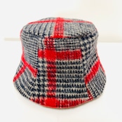 MLサイズ!ネイビーレッドチェックと美しいツイードなフラワーハット